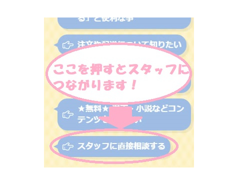 ここを押すと画面の向こう側で待機している私たちスタッフに接続し、