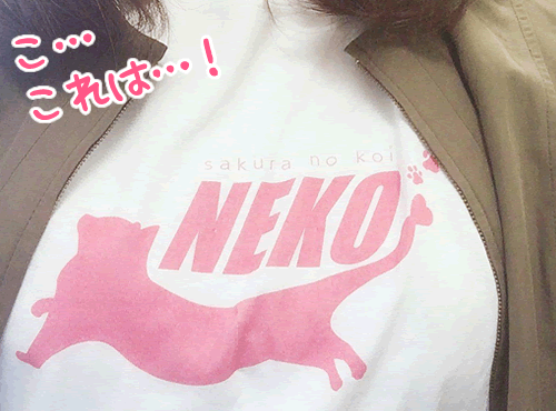 これは、つい先日Twitterの企画でプレゼントしていた、さくらの恋猫のTシャツ!(通称猫T)