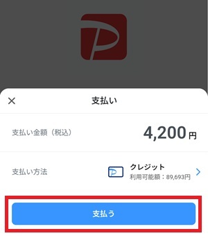 3)金額をご確認いただき、「支払う」ボタンにて決済が完了いたします。
