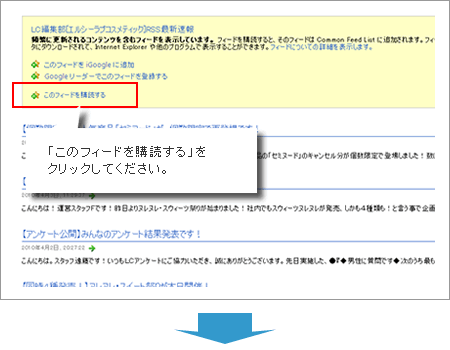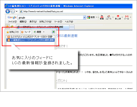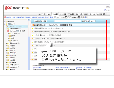 お気に入りのサイトをRSSリーダーの登録方法しておけば、サイトに訪れなくとも最新情報を簡単にチェックすることができます。 LCも、RSS配信を行っています!