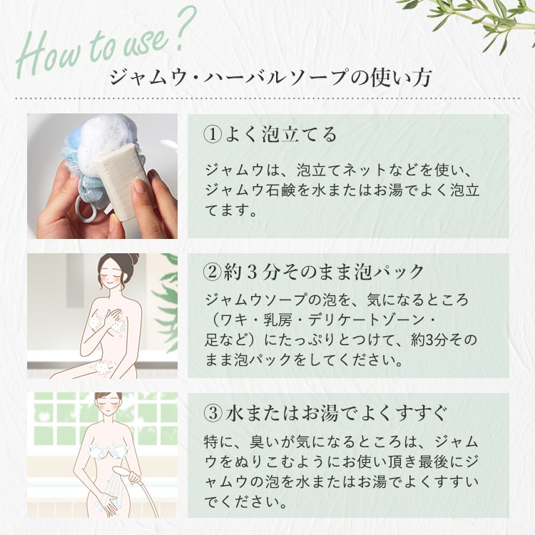 ※ジャムウ・ハーバルソープは、全身にご使用いただけます。