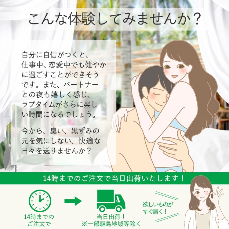 今から、臭い、黒ずみの元を気にしない、快適な日々を送りませんか?